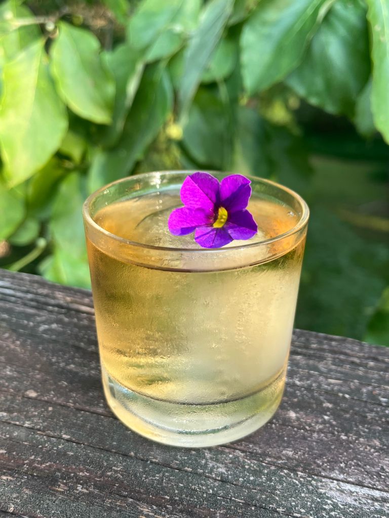 Ingredients: Toki Japanese whisky, Pierre Ferrand 1840 Cognac, Red Bush tea, chamomile, lemon oleo saccharum