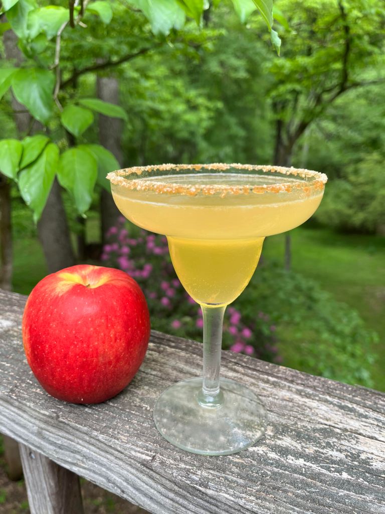 Wet the rim of a margarita glass with a lemon wedge and then dip into smoked salt. In a shaker half-filled with ice, combine 1 ounce mezcal, 1/2 ounce simple syrup, and 1/2 ounce lemon juice. Shake and strain into the glass. Add about 3-4 ounces of chilled hard apple cider, until the glass is full. (I used Schilling’s Local Legend, a semi-sweet cider made by Daughter’s former employer in Washington State.)