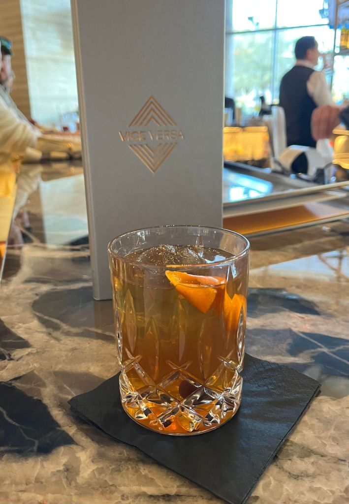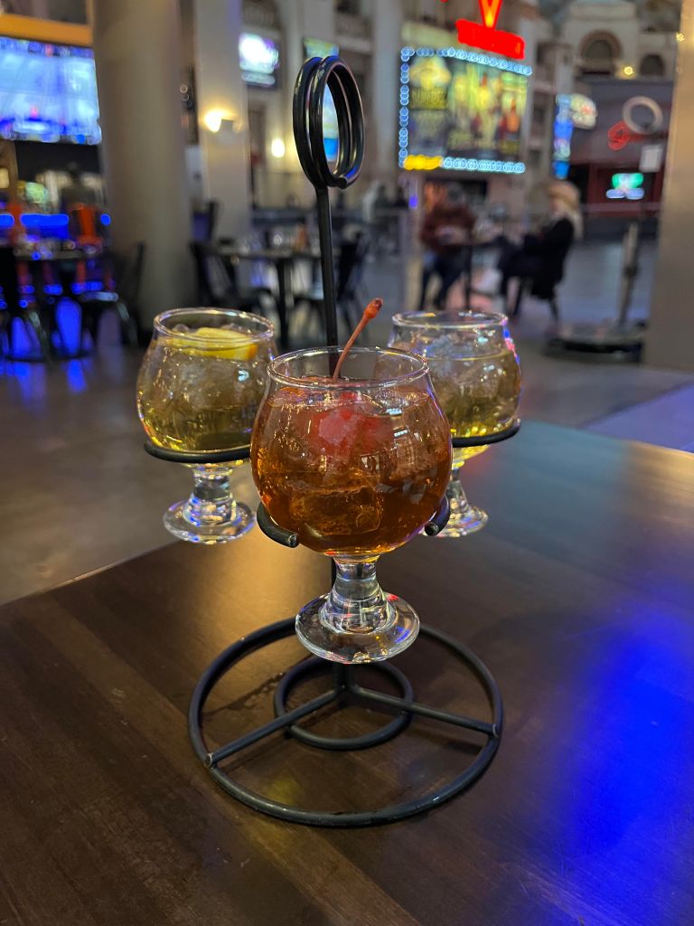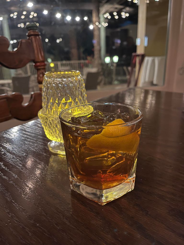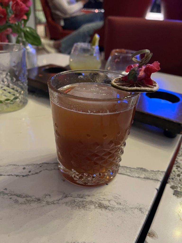 My rating: **** out of 5. Although not technically an Old Fashioned, this was the only drink on the cocktail menu with whiskey. The mezcal gave it a smoky favor, and the tamarindo syrup definitely tamed the bitterness of the amaro and the acidity of the lemon. The menu stated: “smooth and smokey, whats not to love” (sic) and that was accurate! I enjoyed it, even though I couldn’t taste the whiskey.