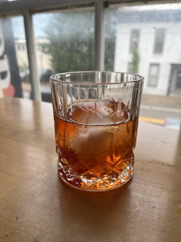 My rating: ***** out of 5. The cocktail was tasty and beautifully presented. The bitters were a bit more fruity than the usual Angostura, which worked with the vanilla syrup and the honey and caramel notes in the bourbon. Happily, even with the syrup, the drink was not really sweet, and highlighted the bourbon, which one would expect at a powerhouse distillery bar.